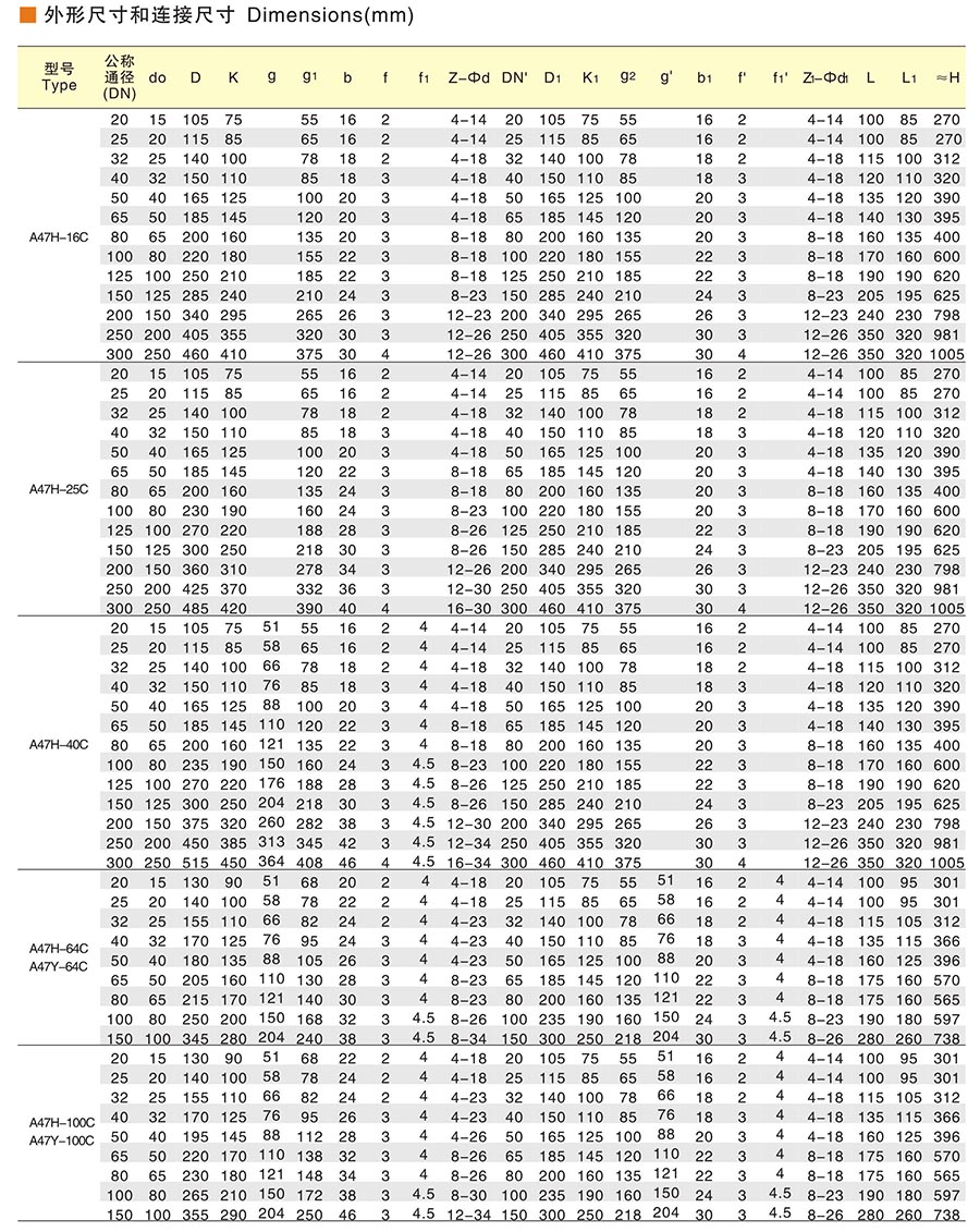 公称通径:DN20-300mm