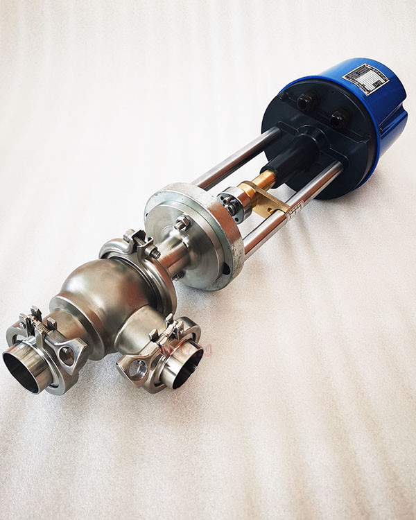 电动卫生级调节阀由电动执行机构和卫生级调节阀体组成,适用于各种压力、温度、流量等物理量调节,如食品、制药、化妆品、洁净蒸汽、酒类、饮料、生化工业过程控制场合。 卫生级调节阀具有结构紧凑、装拆方便、调节精度高等优点,尤其是在压降损失小、流量大、可调范围广、流量精度高,完全符合IEC534-1978标准,阀门泄漏量符合ANSIB16.104标准。 电动卫生级调节阀采用角型设计确保阀门自排放,标准电子抛光,光滑表面确保清洁,无介质积存区域,不会产生潜在的污染。快速拆装阀体和阀帽,使调节阀打开和维修快捷容易,使过程停机时间缩短。