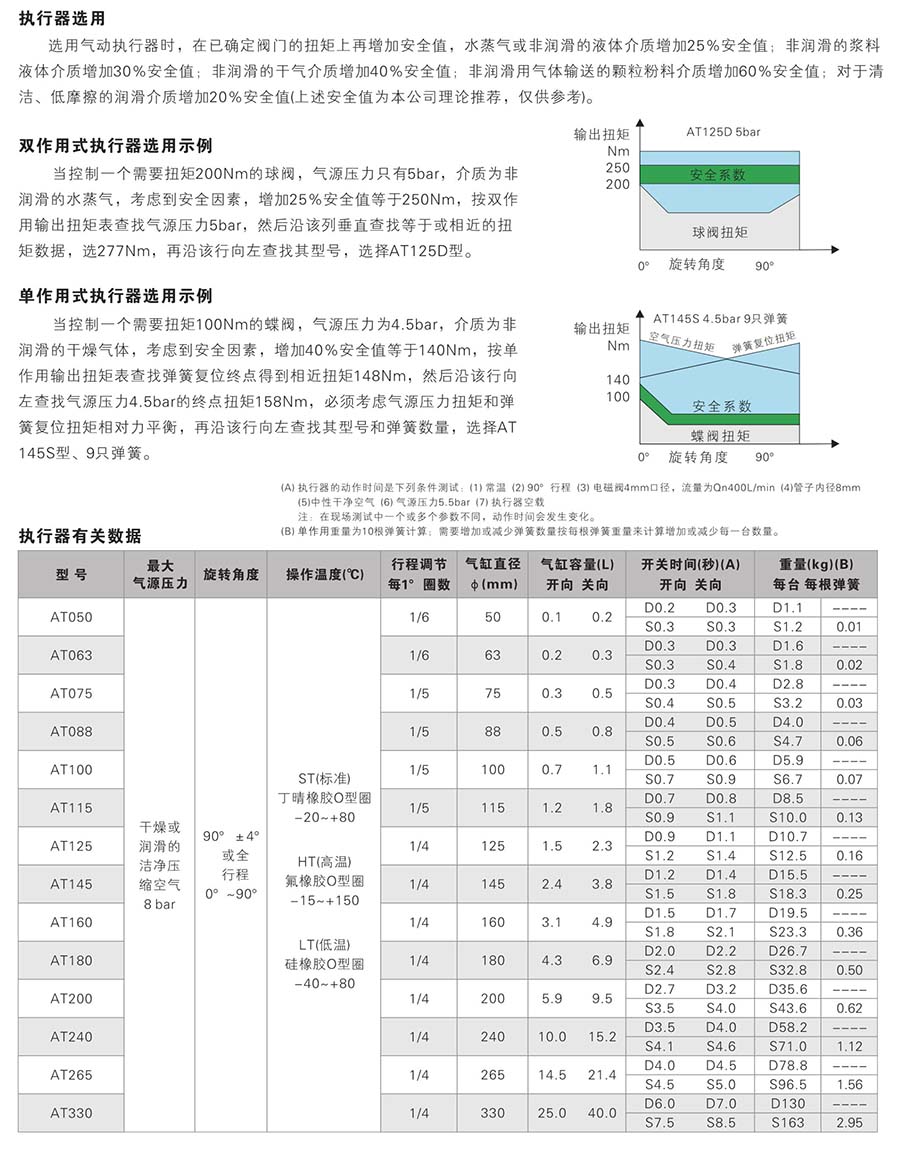 AT新型齿轮齿条式气动执行器由上海川沪阀门综合了国内外新技术,通过CAD三维模型创新优化设计,外形美观紧凑、现代化的造型;并采用实用新型材料、新工艺,使产品的质量、性能更加可靠;多规格选型更经济实惠;产品全面符合新国际标准技术规范,满足现在和未来的需求。